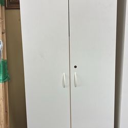 White 2-Door Wardrobe Armoire with Hanging Rod Drawer Shelf and Silver Handles $140 $140Dunwoody, GA
