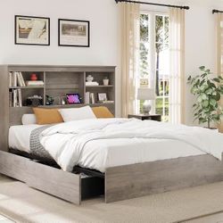 Corner Bed Frame Twin XL with Storage Drawers and Bookcase Headboard(TXL017-1)$150Duluth, GA