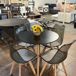 🔥Set of 5🔥Round Dining Table Set, Small Kitchen Table Chairs Set of 4 Space Saving Furniture, Clear Acrylic Chairs, Solid Wood Legs, for Living Room$199Decatur, GA