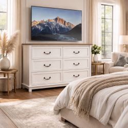 🎉On sale 🎉WLIVE Farmhouse Dresser for Bedroom, 51.97'' Wide Wood 6 Drawer Dresser, Chest of Drawers with Roman Metal Handle, TV Stand for 60 inch TV$180Doraville, GA