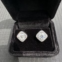 2CT Square Halo Earrings (1CT Each) | GRA Certified Moissanite | 925 Silver | New$140Hiram, GA