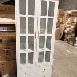 Bookcase with Glass Doors, Wooden Display Cabinet with 4-Tier Shelf & 2 Drawers white $150 $150Dunwoody, GA