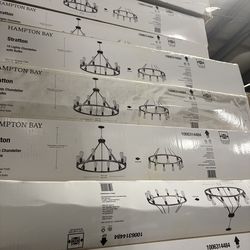 Hampton Bay Stratton 10-Light Black and Woodgrain Wagon Wheel, Industrial Farmhouse Dining Room Chandelier with Bulbs Included Store SKU# 1006-314-484$180Marietta, GA