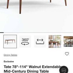 Crate & Barrel Tate 78"-114" Walnut Extendable Mid-Century Dining Table$500Brookhaven, GA