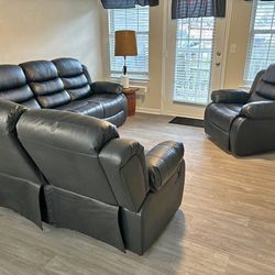 😍🔥Brand new black premium leather comfortable recliner sofa + loveseat - opt chair | Pay on delivery 🚚$850Atlanta, GA