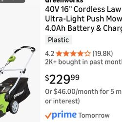 Greenworks 40V Electric Mower-$160$160Acworth, GA