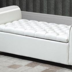 Ottoman with Storage for Living Room, Leather Upholstered Bench Footrest, Bedroom Benches at Foot of Bed, Rolled Arm Foot Stool for Bedroom, White 👈$59Atlanta, GA