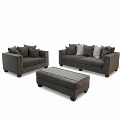 Cindy Crawford Home Sidney Road Gray Sofa, Chair & Ottoman – Set of 3$600Austell, GA