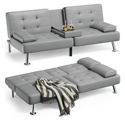 Futon Sofa Bed, Leather Futon Couch with Removable Armrests, Adjustable Recliner Sleeper Sofa Bed with Dual Cup Holders for Living Room, Apartment, Of$90Dunwoody, GA