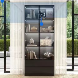 78.7 in. Black Wooden Accent Storage Cabinet With 2-Glass Doors, Drawers, Multiple Shelves, LED Lights $190$190Gillem Enclave, GA