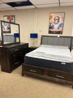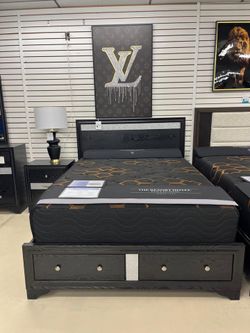Full Size Bed Frame with LED Lights Headboard,4 Drawers,Charging Station,Guardrail,Crystal Button,(292-2)$160Duluth, GA