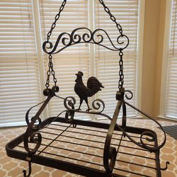 Vintage French Rooster Design Dark Brown Metal Ceiling Pot and Pan Hanging Rack $95Duluth, GA