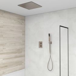 Modern 16" Rain Thermostatic Shower Faucet Brushed Nickel Shower System with Hand Shower