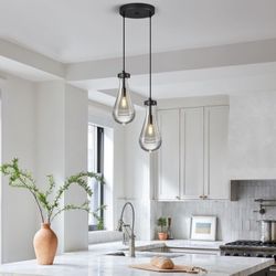Teardrop Glass Pendant Light – Adjustable Dual Drop with Black Metal Finish$45Tucker, GA
