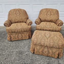 Ethan Allen 2 Swivel Club Chairs And Ottoman Living Room Bedroom Armchairs$650Duluth, GA