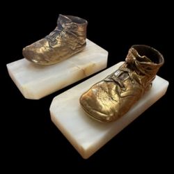 Vintage Copper Bronze Clad Baby Shoes Bookends on Solid Marble Base$35Snellville, GA