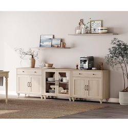 Sideboard Cabinet with 2 Glass Door, 4 Wood Doors and 2 Drawers, Vintage Wood Grain Design, Buffet Cabinet with Storage, Coffee Bar for Dinning Room, $368Buford, GA