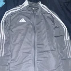 ADIDAS Grey W/ Orange Stripe Warm-Up Hooded Track Jacket Size Small. Is in fantastic shape. Perfect for running or jogging. $15Tigard, OR