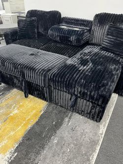 Soft Jumbo corduroy fabric large Reclining Sectional w/2 Cup holders in black$1,699Atlanta, GA