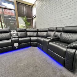 Leather Black Recliner Sectional Sofa W BT Speaker, LED & Cup Holders $1,299Atlanta, GA
