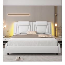 Queen Size Grey Metal Bed Frame With Led Lights Charging Station With Storage $300Conyers, GA