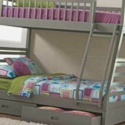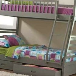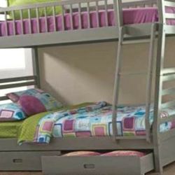 BUNK BEDS Twin Over Full Bunk Bed In Grey FREE MATTRESSES$899Atlanta, GA