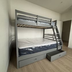 BUNK BEDS Twin Over Full Bunk Bed In Grey FREE MATTRESSES$899Atlanta, GA