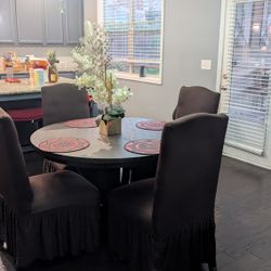 Round Dark Brown Dining Table With 4 Chairs ( Including Chair Covers)$300Snellville, GA