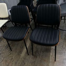 Dining Chairs Set of 2 Mid Century Modern Retro Faux Leather Chair with Walnut Bentwood Back Upholstered Seat Metal Legs Adjustable Foot for Kitchen D$99Duluth, GA