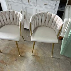 Velvet Dining Chairs Set of 2, Modern Upholstered Dining Room Chairs with Golden Metal Legs and Woven Backrest for Dining Room, Kitchen, Vanity, Livin$99Duluth, GA
