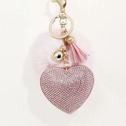 Cute 1pc Women Rhinestone Inlaid Korean Solid Color Heart-Shaped Keychain/bag charm With Love Label & Ball$10Loganville, GA