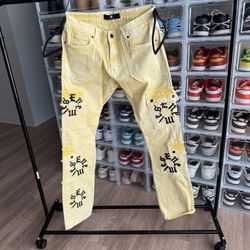 FOCUS Yellow Distressed Graphic Jeans — W36 — $20$20Buford, GA