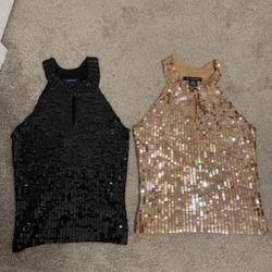 52 Weekends rame blend gold / Black sequined halter style top size M$15Lithonia, GA
