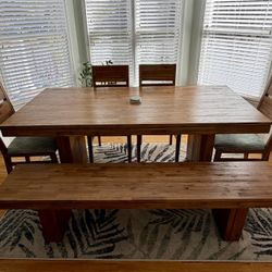MOVING SALE - Solid Wood Dining Table Set (6-Piece – Includes Bench)$700Roswell, GA