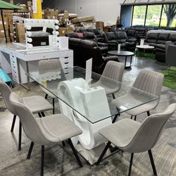 Modern Glass Dining Table With 6 Chairs / Mesa de comedor moderna de cristal con 6 sillas$999Duluth, GA