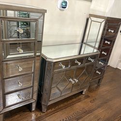 3-Piece Mirrored Glam Dresser Set – Crystal Knobs – Stylish Accent Storage$275Atlanta, GA