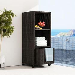 3-Tier Rattan File Cabinet with Wheels, Mobile File Cabinet with Rattan Drawer, Filing Cabinet Side Storage Cabinet, Vertical File Cabinet for Home Of$70Atlanta, GA