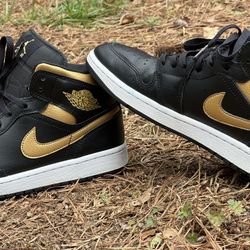 Size 9 Nike Air Jordan 1 Mid in the black and metallic gold $60Mcdonough, GA