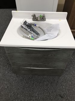 Sheffield Home Acadia 24 in. W x 19 in. D Single Bath Vanity in Rustic Wood Engineered Stone Vanity Top with White Basin and Mirror$185Atlanta, GA