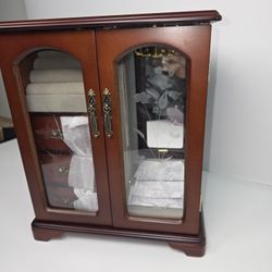 Refined jewelry organizers and storage,vintage wooden jewelry box with ring holder, 3 drawers, necklace storage and glass plastic doors. The plastic i$30Union City, GA