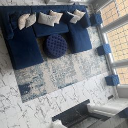 Blue sectional w/ottomans and large area Rug$850Conyers, GA