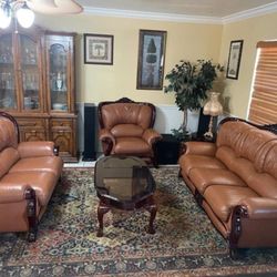 Beautiful 3 Piece Leather Sofa Set With Mahogany Frame$750Fayetteville, GA