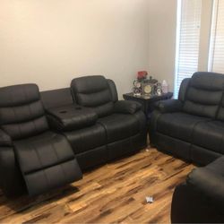β¨ Brand New Black Leather Recliner Sofa + Loveseat W/ Cup Holders - Optional Recliner Chair | Pay After Delivery π$825Atlanta, GA