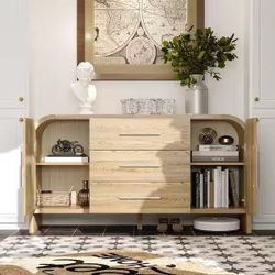 ❤️🔥 Light Oak 31.5 in. Accent Storage Cabinet with 4 Shelves, 3 Drawers, Modern Sideboard with Rounded Corners, 2 Cabinets$180$180Gillem Enclave, GA