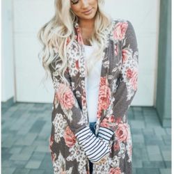 Brown Striped Cuffs Floral Print Long Cardigan$15Fayetteville, GA