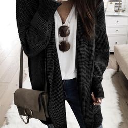 Long Open Cardigan In Black Checked Knit$20Fayetteville, GA