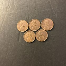 Coins – Lincoln Pennies – 1955S San Francisco – Original Mint Luster Final Year of San Francisco Wheat Pennies - Total 5 Coins $15Macon, GA
