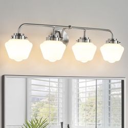 4 Light Brushed Nickel Bathroom Vanity Light with Schoolhouse Shades$55Tucker, GA