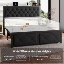 β€οΈβπ₯ Queen Bed Frame with 2 Storage Drawers, Linen Upholstered Headboard Platform Bed with Charging Station, No Box Spring Needed, Metal Slats Suppor$90Atlanta, GA