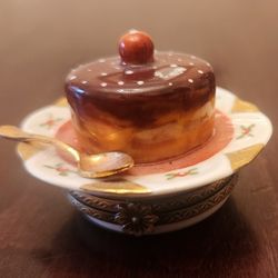 Vintage Limoges Porcelain Chocolate Cherry Cake on Plate with Spoon Trinket Box France$175Duluth, GA